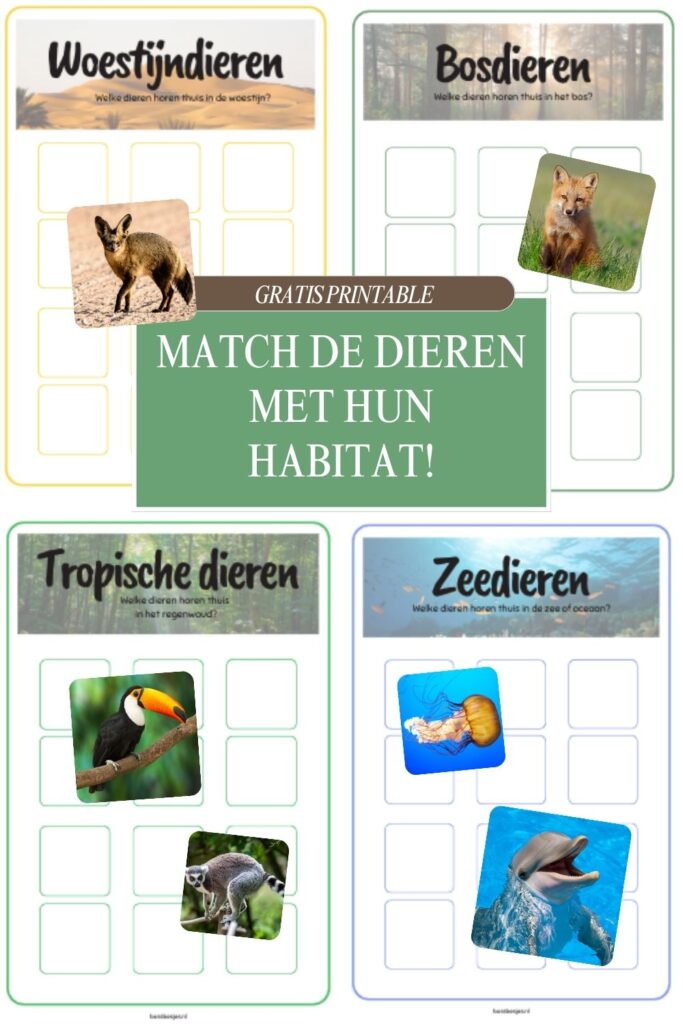 Ben je op zoek naar een leuke รฉn educatieve activiteit voor kinderen? Dan zit je hier goed! Met deze gratis printable leren kinderen spelenderwijs over verschillende dieren en de leefomgeving waarin ze thuishoren. Perfect voor thuis, in de klas of op de opvang.
